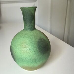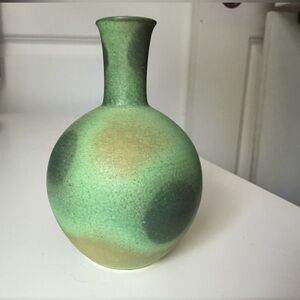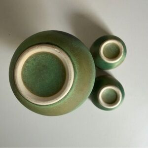 Elegant green ceramic Japanese sake set with decanter and two matching cups. Finish has a soft gradient glaze.