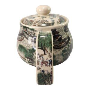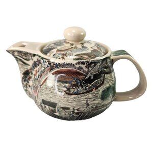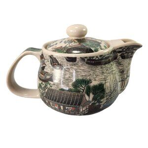 Japanese Sake Set Teapot And 6 Cups Tea Pot Infuser Xinag Long Art Ceramic Vtg READ