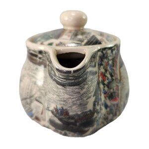 So many intricate details in the painting on the teapot and cups. Look for trees, buildings, bridges, boats, people and umbrellas.