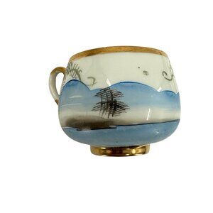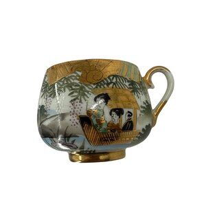 These vintage Japanese Kutani porcelain coffee/tea cups and saucers exude elegance with their intricate hand-painted design and gold trim. The exquisite craftsmanship reflects traditional Japanese artistry, making them a valuable addition to any collection or a sophisticated serving set for beverages.