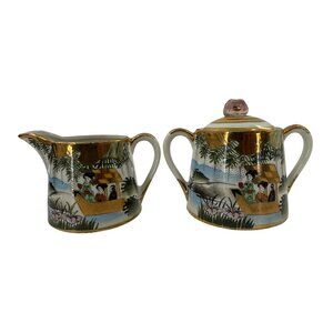 Japanese Satsumi Kutani Porcelain Coffee Tea Set Cream Sugar Hand Painted Gold