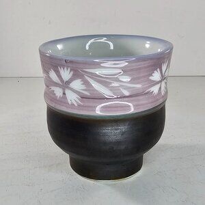 Japanese Style Ceramic Tea Cup Floral Design Purple Brown No Handle Coffee Mug