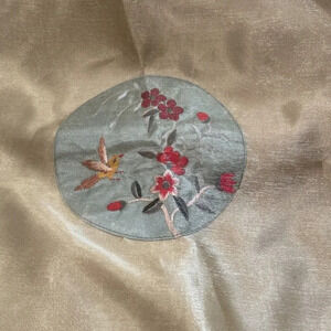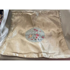 Japanese Style Gold Silk Pillow Covers Square Floral Bird Embroidered 2 NEW