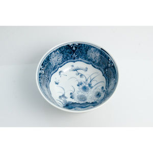 Japanese Vintage Bowl with Blue Floral Pattern