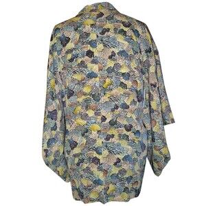 Japanese Vintage Haori Kimono Tie Front Jacket Silk Garden Landscape pattern OS