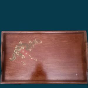 Japanese Vintage Lacquer Ware Wooden Rectangular Serving Tray & Orange Flowers