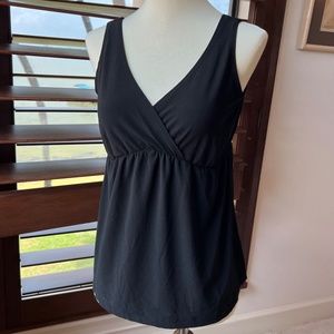 You can wear the crossover black tank separately and expand your wardrobe with this basic black essential.