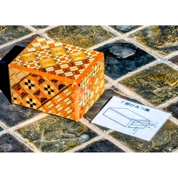 Japanese Yosegi Puzzle Samurai Wooden Secret Trick Mini 2.5x2" Box 7-Steps NIP