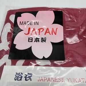 Japanese Yukata Kimono Womens Size Large 58" 5ft 5" - 5ft 9" Maroon 100% Cotton Japan