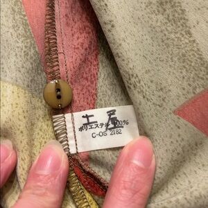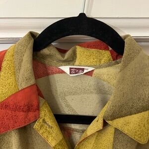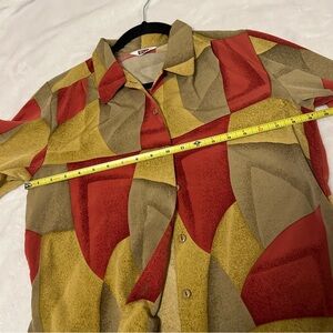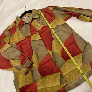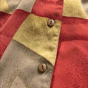 Purchased in Japan, red and mustard geometric patterns, buttons with gold accents.