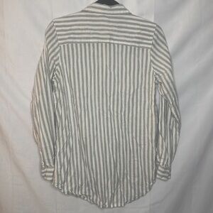 STYLE: 100% cotton stripe long sleeve button down, a little flowy, rounded hem, soft fabric, could be work wear or everyday wear