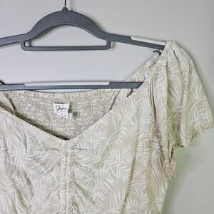 Japna Beige Tropical Crop Top Short Sleeve Blouse Size Large Beachy Coastal
