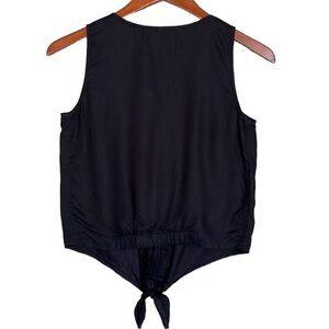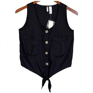 Japna Black Button Down Front Knot Tie Sleeveless Cropped Top NWT