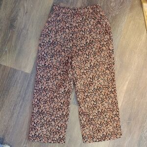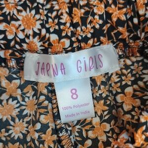 These Japna pants feature a striking floral print in black and orange, offering a chic and modern look. The ankle-length design and cropped style make them perfect for a stylish, comfortable fit. Crafted from lightweight fabric, they provide a breezy feel ideal for any casual occasion.