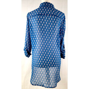 Japna Blue Floral Sheer High Low Wrap Blouse Women’s Size Large Boho Sexy Top