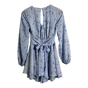Japna Blue Floral Womens Jumpsuit Romper Playsuit M Medium Ruffled Belted