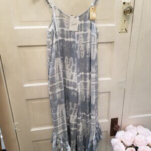 Japna Blue & White Jumpsuit Overalls Romper w/Pockets Ruffles Women's Small NEW