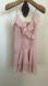 Elegant blush pink dress with subtle leaf pattern. Ideal for warm weather outings.