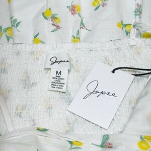 Japna Boho Lemon Print Smocked Mini Dress Size Medium NWT
