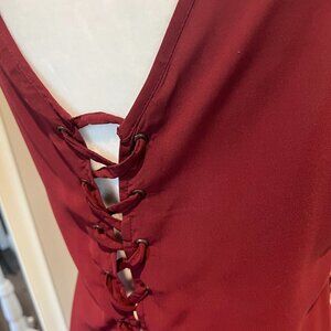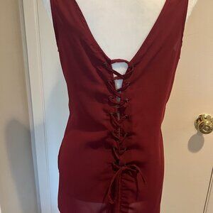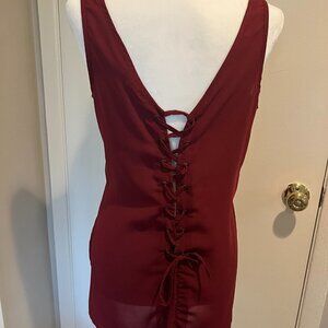 Japna Burgundy lace up back loose tank Size Small