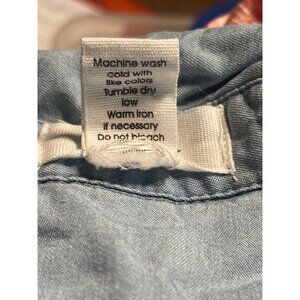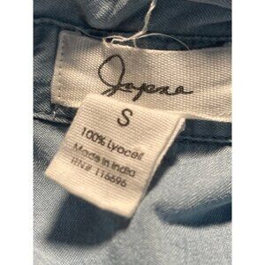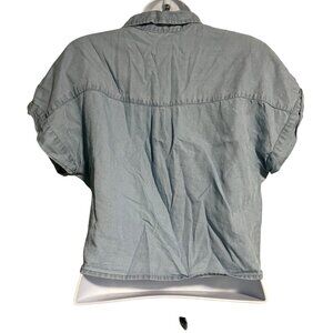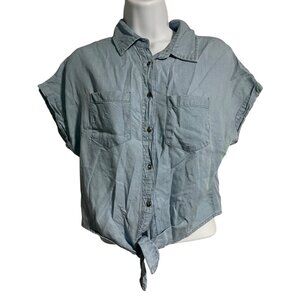 Japna Button Front Tie Bottom Cropped Top Womens Size Small Blue Chambray