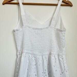 Japna Dress Womens Small White Eyelet Embroidered Sleeveless Ruffle Hem