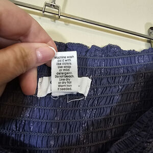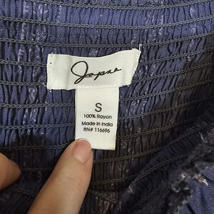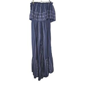 Japna Floral Strapless Boho Wide Leg Jumpsuit Ruffle Hem Blue White Size Small
