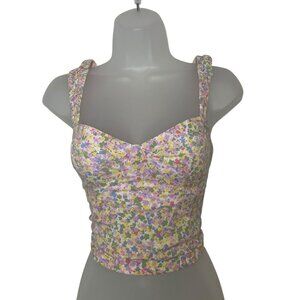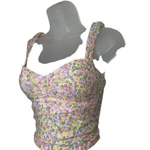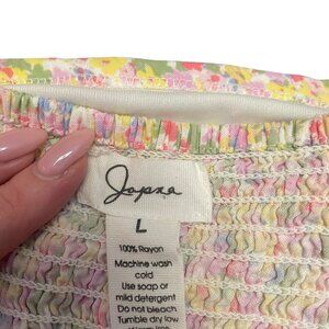 Japna Floral Sweetheart Crop Top Smocked Back Rayon Sleeveless Blouse Size Large