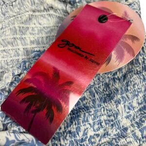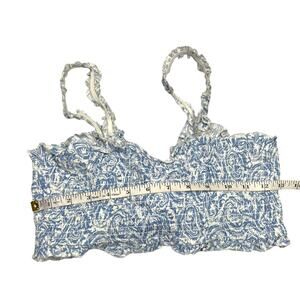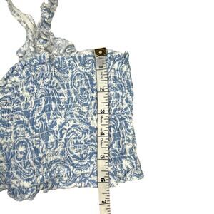 NWT Goa Beachwear by Japna blue and white printed smocked tie front crop top. Women's size Small