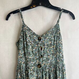 Japna Green Floral Print Button Front Sleeveless Boho Halter Dress Size Small