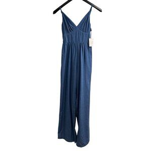 Japna Jumpsuit Womens S Blue Linen Blend Wide Leg Tie Open Back Coastal Beachy