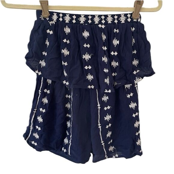 Japna Juniors XS Blue White Strapless Ruffle Boho Aztec Romper