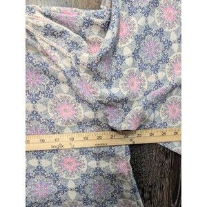 Color/Pattern: Blue and pink medallion floral print on a cream background