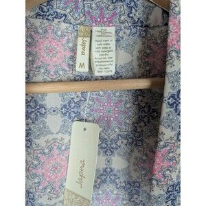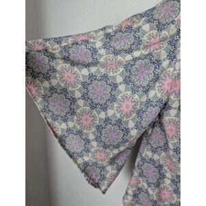Japna Kimono Womens Medium Blue Pink Boho Floral Medallion Open Front Cotton