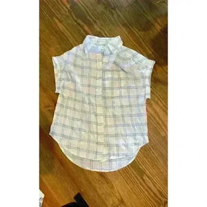 Japna Lavender and Cream Plaid Cap Sleeve Button Down Top, XS