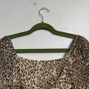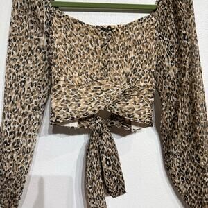 Japna Leopard Print Cropped Tie Back Long Sleeve Blouse Sz M