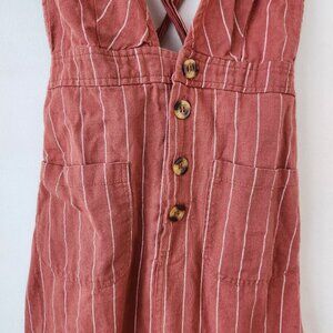 Japna Linen Blend Pink Boho Striped Jumper Dress Cottagecore Women's S