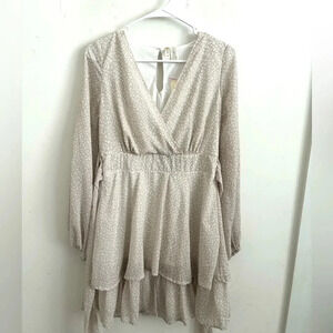 Japna Long Sleeve Chiffon Surplice Neckline Dress Size M Animal Print