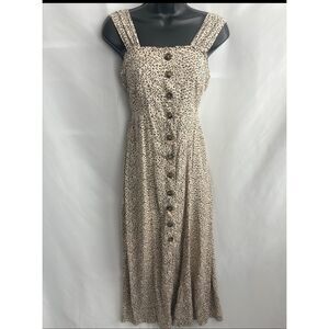 Japna Midi Maxi Dress Leopard Cheetah Print Prairie Black Tan Button Down sze M