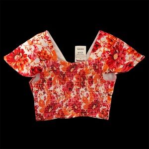 Japna | NWT Floral Flutter Sleeve Crop Top | Smocked Back | Small
