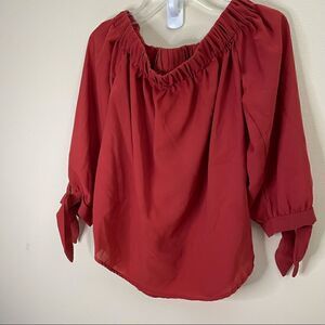 Japna top that can be worn off the shoulders, in a dark Burt orange color, flattering and flowing.