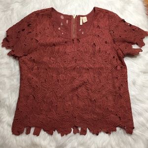 Japna Openwork Mauve Shell Sz Large Zipper & hook in the back Approx measurements: Bust 39" & Length 22 1/2" to 24 1/2 / Fabric: 60% cotton-20% poly-20% nylon Very pretty blouse.