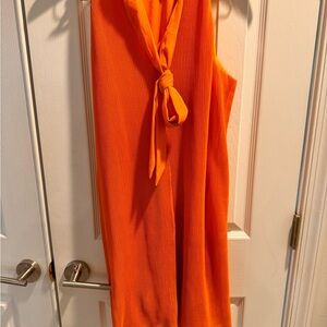 This vibrant orange mini sundress by Japna is perfect for a night out. Featuring a stylish halter neckline and a sleeveless design, it offers a chic and breezy look. The sundress is crafted from a lightweight fabric, ensuring comfort and elegance.