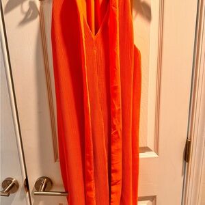 This vibrant orange mini sundress by Japna is perfect for a night out. Featuring a stylish halter neckline and a sleeveless design, it offers a chic and breezy look. The sundress is crafted from a lightweight fabric, ensuring comfort and elegance.