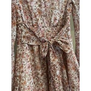 Japna Pink/Peach Floral Print Long Sleeve Tiered Faux Wrap Mini Dress, Sz Small Excellent preowned condition. Worn one time. Japna, adorable, floral, print with long, flowy sleeves. Skirt has tiered ruffles. Length would be short/mini. Smocked panel at back of waist. Attached sash tie that will tie in front, back or on the sides. Keyhole button closure at back of neck. V-neck, faux wrap top.
