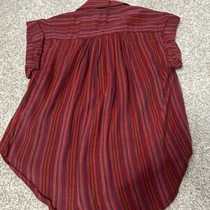 Japna Red Pinstripe Button Down Short Sleeve Blouse XS