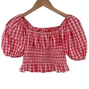 Red Top - Smocked. Short puff sleeves. 100% Cotton.