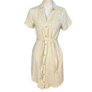 Japna Shirt Dress Size Small Tan Pockets Tie Waist Classic Minimalist Neutral
