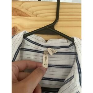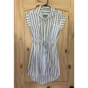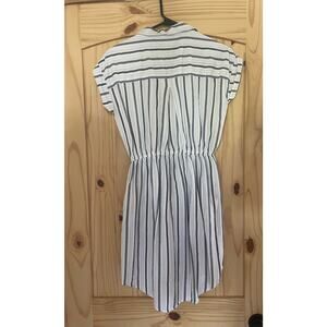 Japna Short Sleeve Collared Striped Shirt Dress Blue And White Size XS Pockets