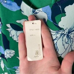 Japna Size Large Green Floral Ruffle Tank Blouse NEW
